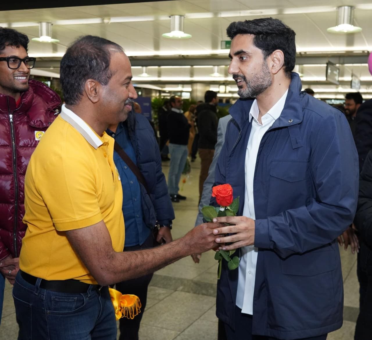 జ్యూరిక్ చేరుకున్న మంత్రి నారా లోకేష్కు జ్యూరిక్ విమానాశ్రయంలో తెలుగు ప్రవాసాంధ్రులు ఘన స్వాగతం పలికారు. ప్రపంచ ఆర్థిక సదస్సు నేపథ్యంలో దావోస్ పర్యటనలో భాగంగా నారా లోకేష్ స్విట్జర్లాండ్కు చేరుకున్నారు.