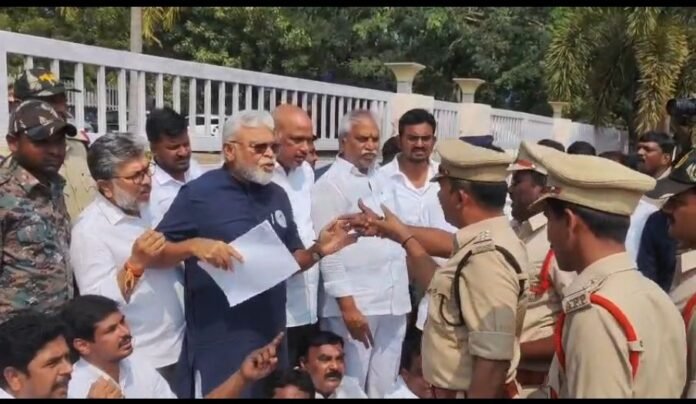 పోలీసుల వైఖరికి నిరసనగా డీజీపీ కార్యాలయం ఎదుట వైసీపీ నేతలు ఆందోళనకు దిగారు. ప్రజాస్వామ్యంలో ఫిర్యాదులు వినిపించే హక్కు ఉన్నప్పటికీ, అధికారుల కలయికకు అడ్డంకులు సృష్టించడం అన్యాయమని నేతలు ఆగ్రహం వ్యక్తం చేశారు.